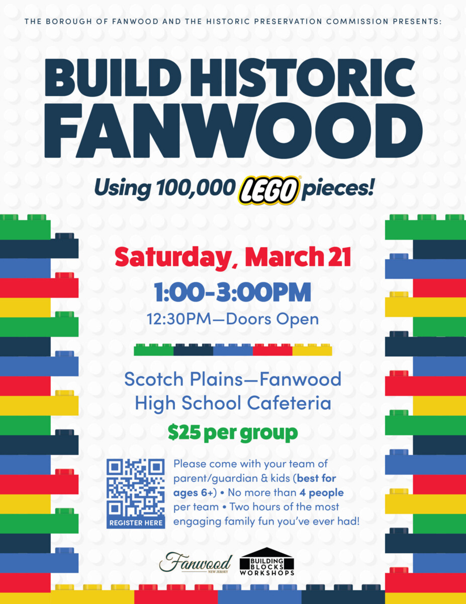 The Borough of Fanwood and Historic Preservation Commission present "Build Historic Fanwood”, a hands-on LEGO building event using 100,000 bricks! Join us Saturday, March 21, from 1–3 PM ...