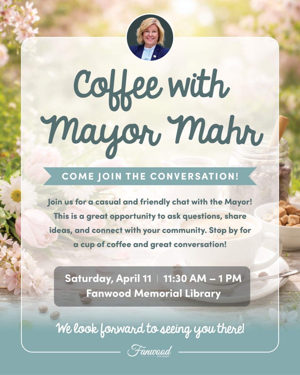 PUBLIC NOTICE Mayor and Council of the Borough of Fanwood January 5, 2026 Reorganization Meeting PLEASE BE ADVISED in compliance with the provisions of the “Open Public Meetings Act” of the State of New Jersey, N.J.S.A. 10:4 et seq. and N.J.S.A. 40:45A-1, the Mayor and Council of the Borough of ...