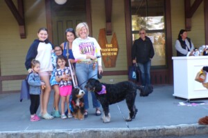 Mayor Colleen Mahr creating a Fan Woof Day visitor.
