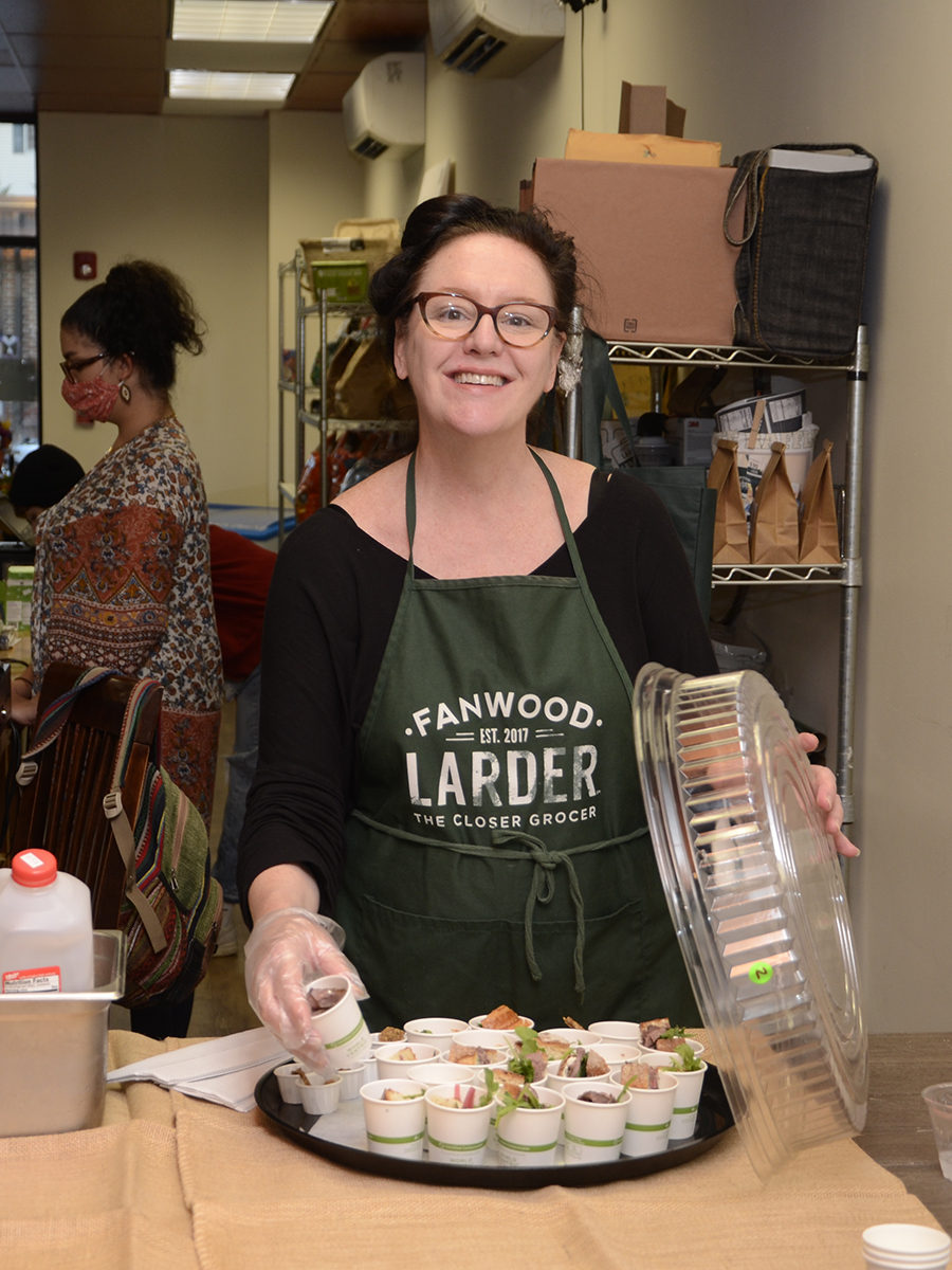 Mayor Colleen Mahr made herself available for a couple hours on Friday, October 22, 2021, to anyone who wanted to discuss issues, ask questions or just chat. The event, held at the Fanwood Larder grocery story on Martine Avenue, attracted several dozen residents who discussed various issues with the Mayor. Fanwood Larder proprietor Eva Pfaff prepared samples of her new wagyu beef sandwiches, cider and coffee for the visitors.
