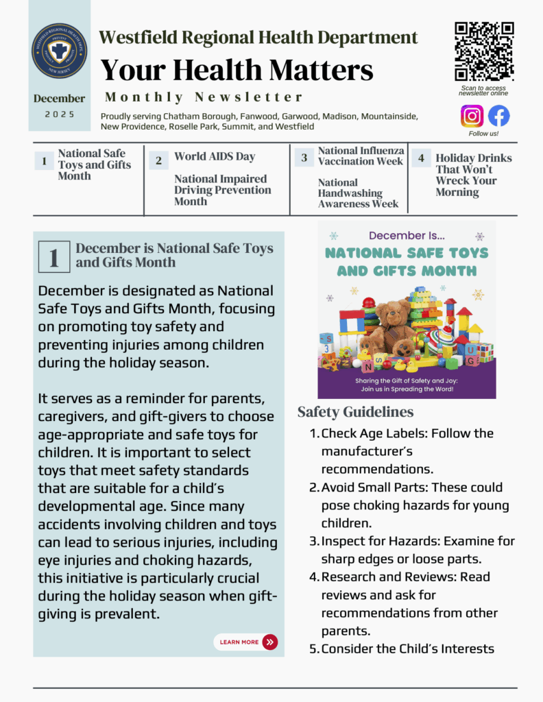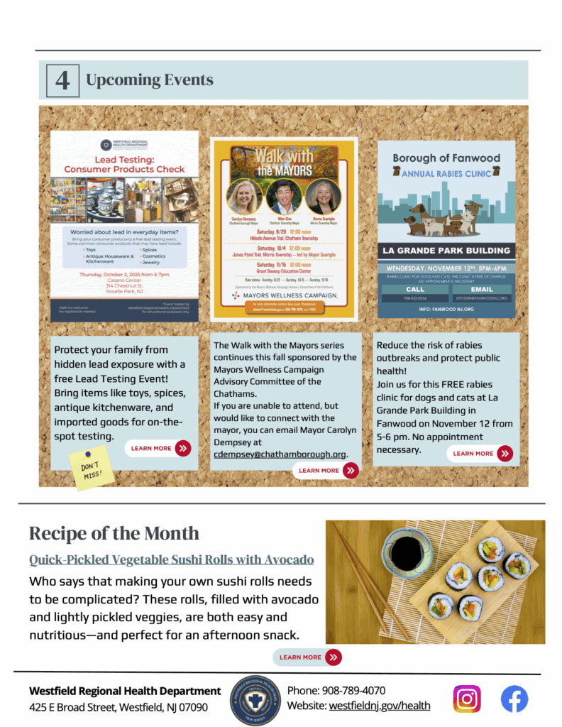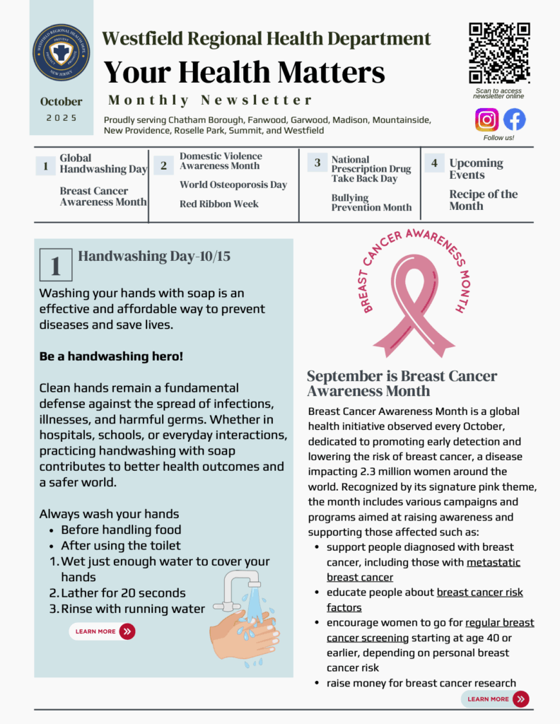 The Borough of Fanwood is a member of the Westfield Regional Board of Health. Questions and concerns regarding health issues should be directed to our Sanitarian.