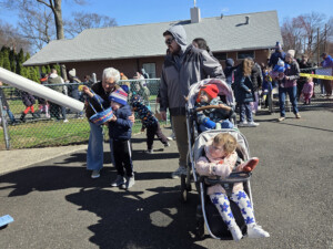 The annual event is a production of the Fanwood Recreation Commission. Recreation Director Bob Budiansky acted as master of ceremonies, while commission members and volunteers assisted at the contest and prize tables. Recreation Commissioner Bruce Zakarin manned the “Bunny Chute,” which dispensed candy to waiting kids. He was assisted by Councilwoman Patricia Walsh. Councilwoman Gina Berry assisted with keeping the line moving for the prize table. Councilwoman Erin McElroy Barker and Councilman Anthony Carter also were on hand.