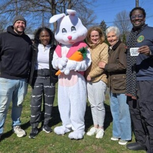 Recreation Commissioner Mike Lowenthal, Councilwoman Gina Berry, the Easter Bunny, Councilwoman Erin McElroy Barker, Councilwoman Patricia Walsh, and Councilman Anthony Carter.