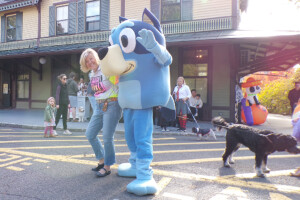 (Fanwood, NJ) — Fan Woof Day took place Sunday, October 27 at the North Side Train Station under a bright sunny Autumn morning. The event, which is has become an annual tradition in Fanwood, featured DJ Mike playing tunes, a stuffed animal adoption table, kids activities, and a visit from Bluey and Bingo, the two main puppy characters from the animated show Bluey. The highlight of the morning was a costume parade and the awarding of prizes.
