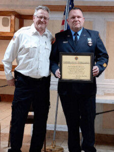 Firefighter Sean Manette with Assistant Fire Chief Steve Szanto.