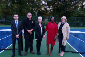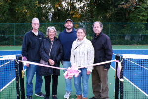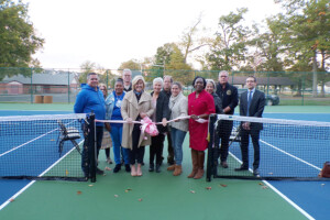 Mayor Colleen Mahr was joined Monday night by Senate President Nick Scutari, Borough Council members, Recreation Commissioners, Borough officials and Scotch Plains-Fanwood High School athletic department representatives at a ribbon cutting marking the completion of the refurbished tennis courts at LaGrande Park. The courts were resurfaced with new nets installed along with new dual garbage/recycling receptacles and benches. The LaGrande basketball courts were also resurfaced with the funding. The Borough would like to thank state Senator Scutari for securing funding for this project through a state appropriation grant.
