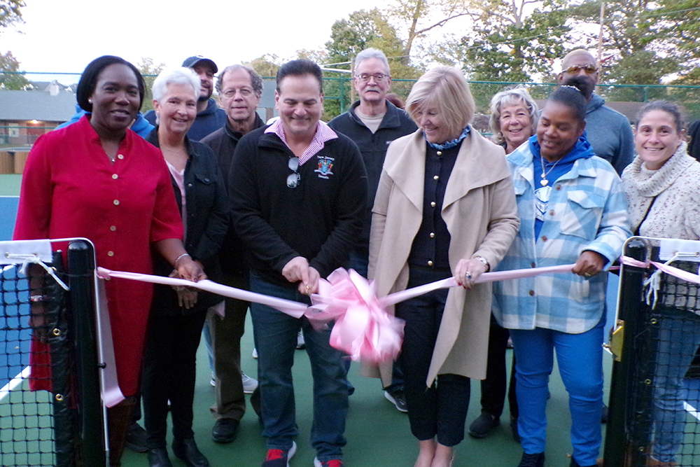 Mayor Colleen Mahr was joined Monday night by Senate President Nick Scutari, Borough Council members, Recreation Commissioners, Borough officials and Scotch Plains-Fanwood High School athletic department representatives at a ribbon cutting marking the completion of the refurbished tennis courts at LaGrande Park. The courts were resurfaced with new nets installed along with new dual garbage/recycling receptacles and benches. The LaGrande basketball courts were also resurfaced with the funding. The Borough would like to thank state Senator Scutari for securing funding for this project through a state appropriation grant.