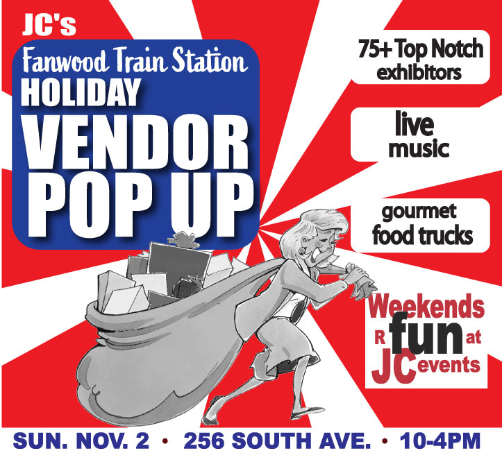 Come to the Holiday Vendor Pop-Up & Craft Fair this Sunday, Nov. 2nd from 10 am-4 pm at the south side Fanwood Train Station parking Lot. This event will feature gourmet food trucks, and live music throughout the day. It’s never too early to start your holiday shopping. Stop by…shop a little, relax, and enjoy the good food, great music, and 75+ exhibitors selling arts and crafts, and collectibles.