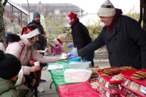 (Fanwood, NJ) – Hundreds attended a fun and cold afternoon of holiday music, pictures with Santa and a petting zoo at the Borough’s annual Holiday Celebration and Tree Lighting at the Northside Train Station on Sunday night. Families had to preregister online for pictures with Santa Clause. Hot chocolate along with cookies, bagels and pizza were served by members of the Recreation Commission. The Scotch Plains-Fanwood High School Chamber Choir sung seasonal carols, while Backyard Buddies Mobile Petting Zoo kept kids entertained through the afternoon. Holiday music classics was also played when the SPFHS Chamber Choir was not performing.