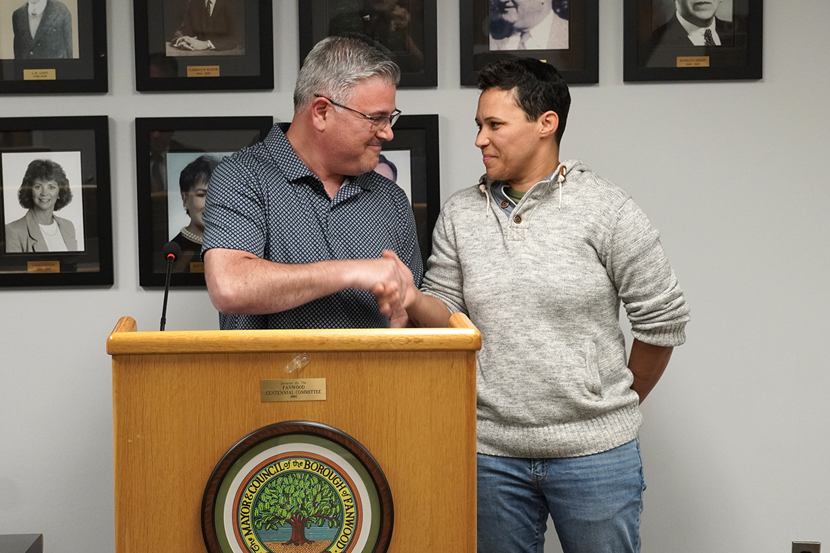 - Councilwoman/Police Commissioner Trisha Walsh presented a National Police Week proclamation to Police Director Mike Bramhall, who then related stories of good works by Fanwood police officers including a successful effort to recover most of the $200,000 a resident lost in a scam