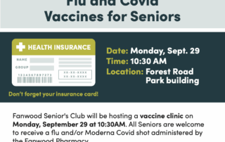 Please register for the Fanwood Senior's Club vaccine clinic being held on Monday, September 29 at 10:30am. You can register by calling Courtney Agnello at 908-322-8236 x123 or email cagnello@fanwoodnj.org.