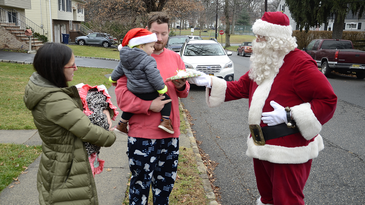 Fanwood’s beloved Santa Parade, absent last year because of COVID, returned to the grateful smiles of families across town on Saturday, Dec. 18, 2021, as Santa Claus delivered presents door to door to more than 350 stops with the help of the Fanwood Volunteer Fire Department, Rescue Squad and police officers of PBA Local 123.