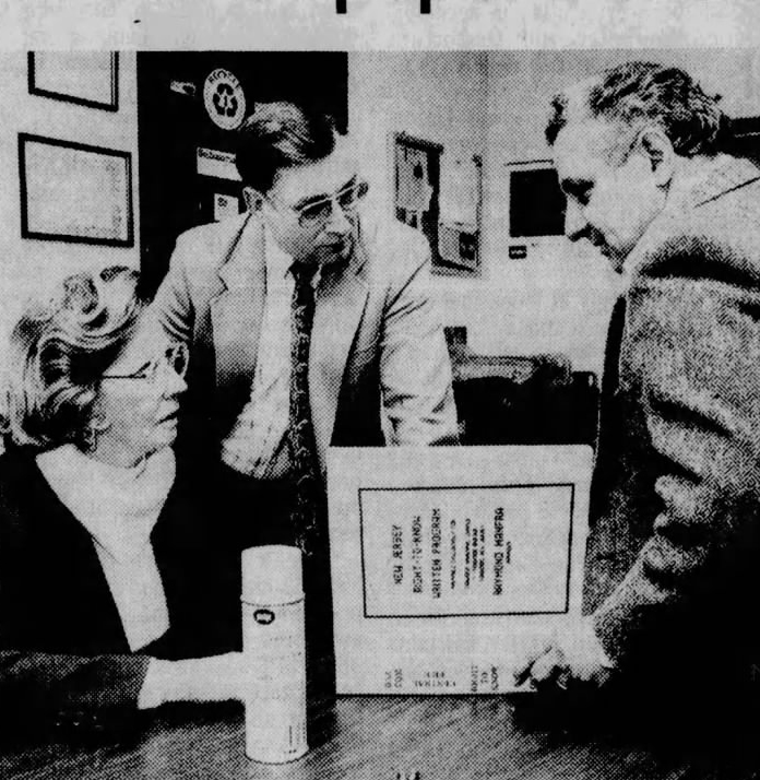 Mayor Patricia Kuran, Fanwood Police Lt. Robert Carboy, and Public Works Director Ray Manfra discuss the state’s Right to Know Law in 1991.